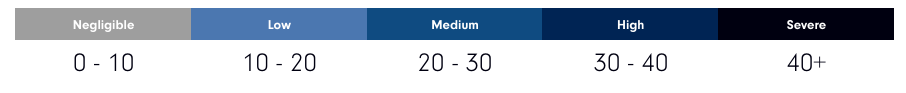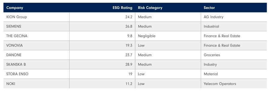 The ESG score of the underlying companies are evaluated by Sustainalytics. Sustainalytics is an independent global player in ESG evaluation. They measure a company’s exposure to industry-specific material ESG risks and how well a company is managing those risks. The ESG scale defined by sustainalytics is: