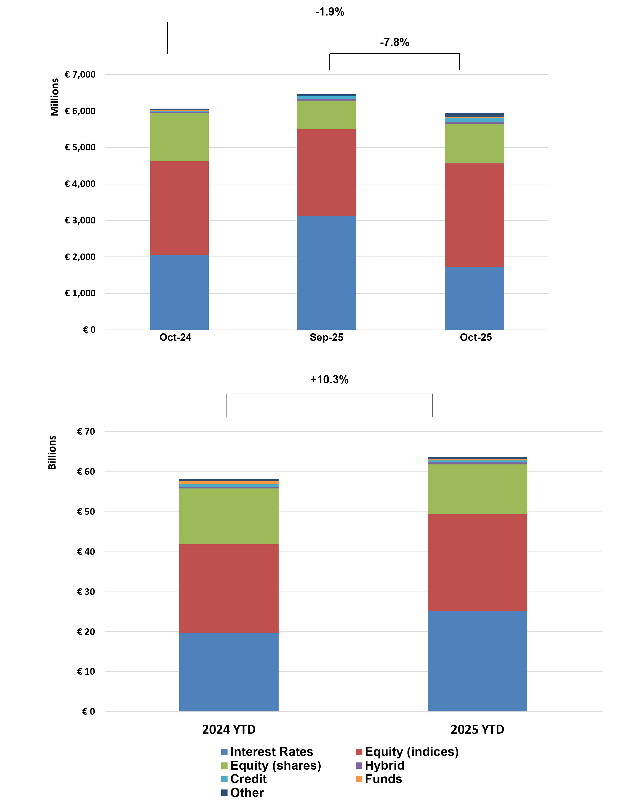 • Underlying Trends: Rate-linked products lead with EUR 25.2Bn (+28.5% YoY), followed by equity indices (EUR 24.5Bn, +10.2% YoY); single stocks declined (-10.5% YoY) to EUR 12.5Bn.