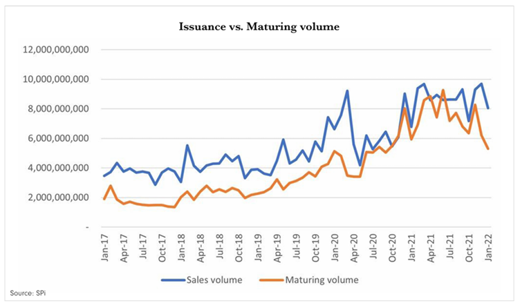 Looking ahead to the remainder of 2022, we see two forces at play. On the one hand, you have expiring products, which are highly dependent on underlying levels. On the other hand, you have high inflation, which seems to be able to attract new money to structured products. At the end of the day, although the roll-over speed of investment products appears to be slowing down due to the negative performance of equity markets, structured products might continue to grow, as they seem to offer a path for investors to obtain real positive yields